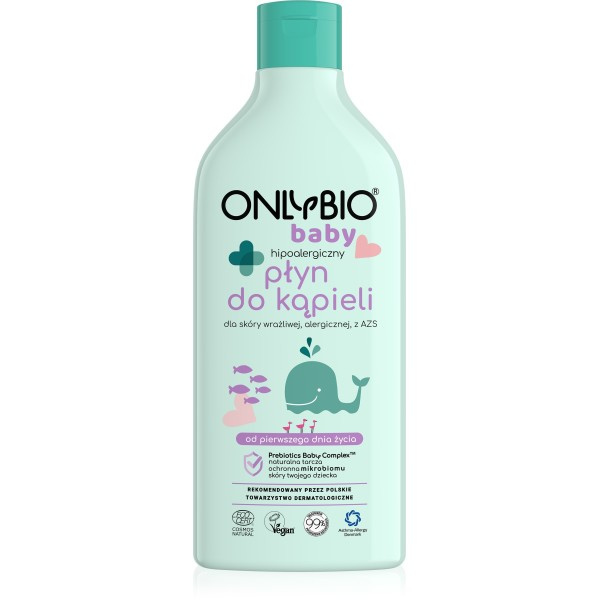 OnlyBio Baby Hipoalergiczny płyn do kąpieli dla skóry wrażliwej i alergicznej stworzony z myślą o pielęgnacji skóry niemowląt od pierwszych dni życia. Formuła płynu została opracowana specjalnie dla skóry wrażliwej, skłonnej do podrażnień i alergii, zapewniając bezpieczną i łagodną kąpiel bez ryzyka podrażnień.