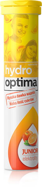 Hydrooptima Junior to suplement diety w postaci musujących tabletek, przeznaczony do uzupełniania elektrolitów u dzieci. Produkt wspiera nawodnienie organizmu, co jest szczególnie ważne w przypadku utraty płynów spowodowanej biegunką, wymiotami, gorączką czy intensywnym wysiłkiem fizycznym.